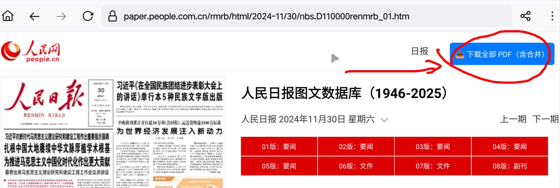 // @description 自动抓取人民日报当前日期所有版面 PDF 并可合并下载